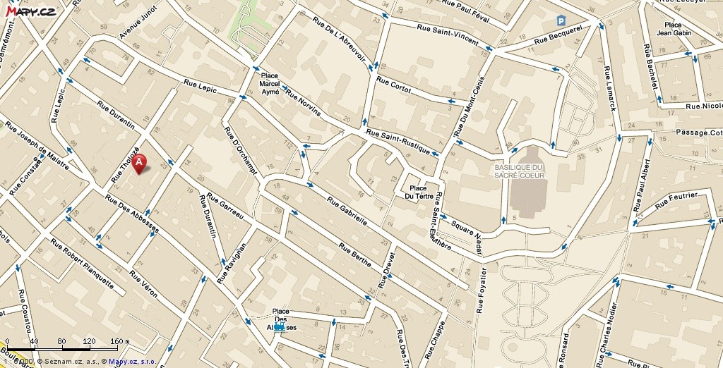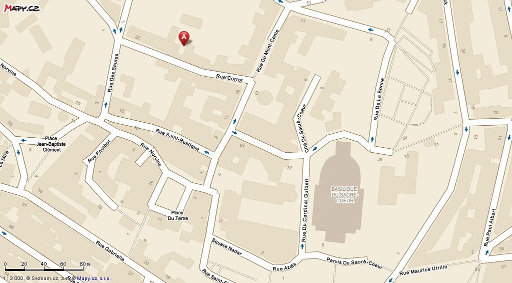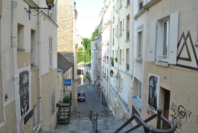 Na naši cestu se vydáme z křižovatky pod Sacré Coeur, kde se kříží pět ulic a která je kolem dokola lemovaná kavárnami. Poté, co si prohlédneme parádního veterána, zaparkovaného u chodníku, vydáme se nahoru do kopce po rue Chappe. Ta nám do cesty nastraží dvoje schody, ale když je překonáme, dostaneme se až nahoru pod Sacré Coeur a budeme mít výhled dolů ze schodů, který už každý z pokročilých Pařížanů aspoň jednou fotografoval.