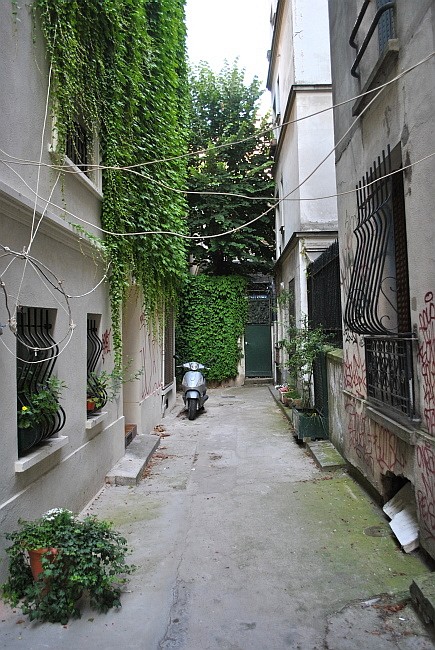 Když se z place Émile Goudeau vydáme po rue Garreau, která vede kolem boční části Bateau Lavoir, po pár krocích narazíme na ošklivou bílou mříž, uzavírající široký průjezd. Za ním uvidíme dvorek zadní části ateliérů. Nedávno jsem měla štěstí, že byla mříž otevřená…