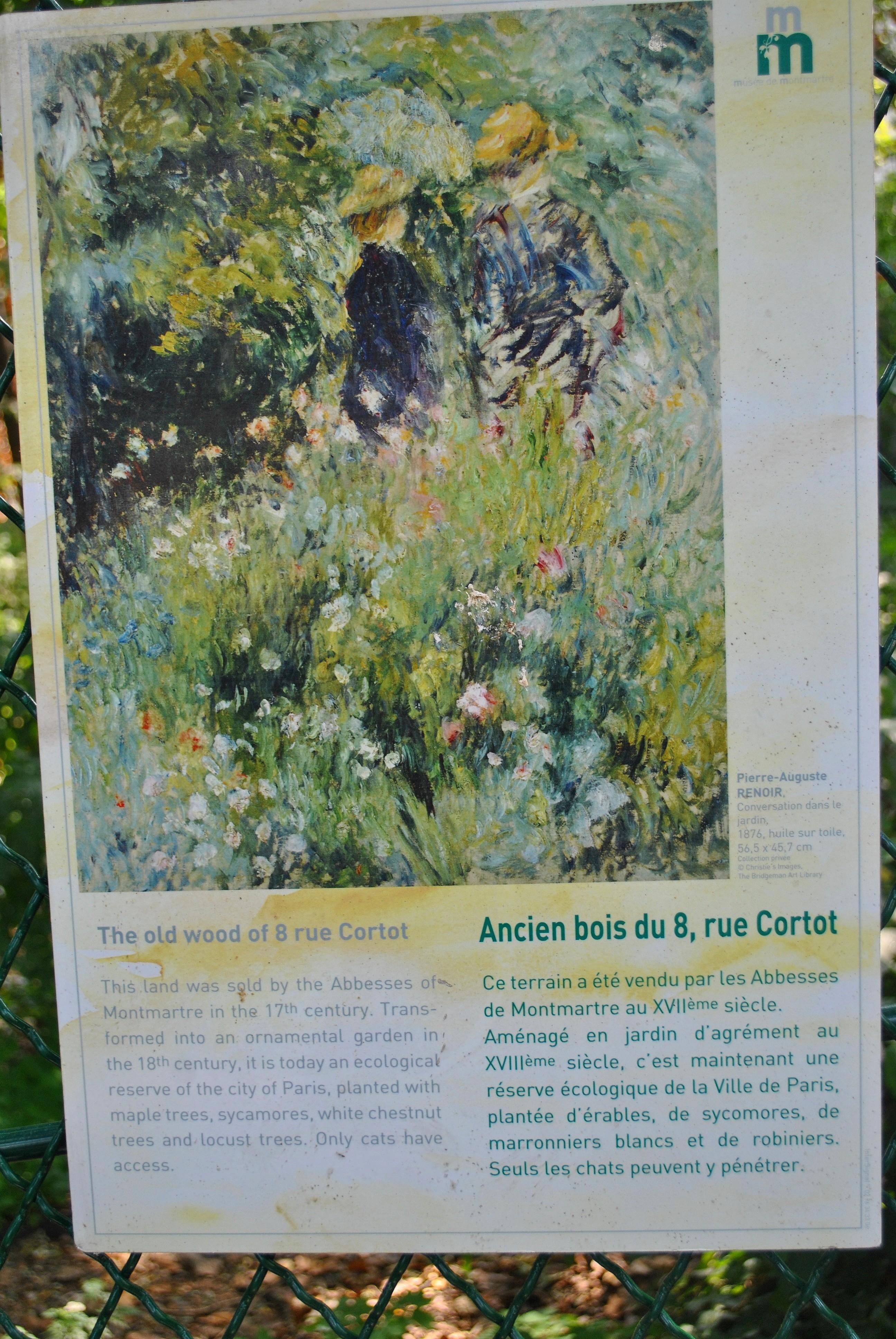 O kousek výš na rohu nakoukneme do otevřené zahrádky Moulin de la Galette, nad kterým stojí druhý (a poslední) zachovalý větrný mlýn, a vydáme se nahoru po rue Girardon, až ke křižovatce s avenue Junot. Tady můžeme nakouknout jen přes mříže na krásné domky, postavené v dnes neprodyšně zavřené zahradě obou bývalých mlýnů.