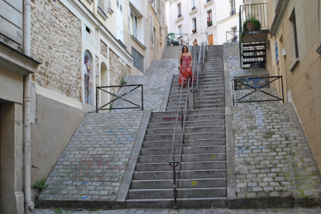 Avenue Junot nás přivede o kousek dál ke schodišti, která vede k rue Caulaincourt, tu přejdeme a do dalším dlouhém schodišti se dostaneme až do rue Lamarck.