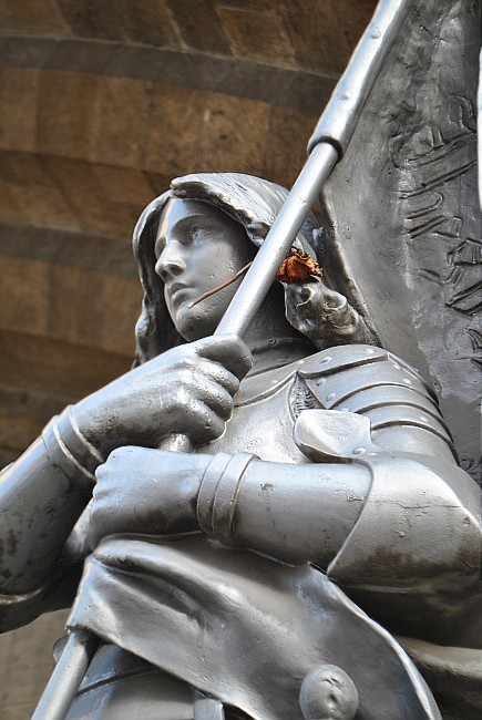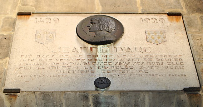 Pamětní deska na zdi kostela připomíná legendu sv. Jany z Arku, stejně jako její železná socha ze začátku 20. století. Ta původně stávala přímo před kostelem a až později byla přemístěna k vedlejšímu kostelu z poloviny 20. století, který je Johance zasvěcený.