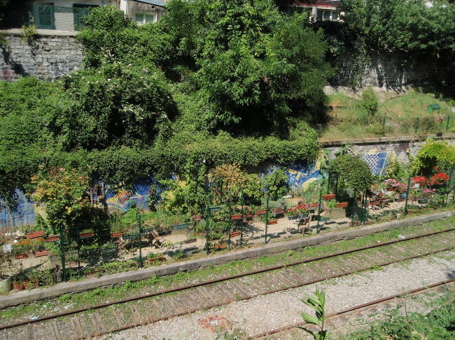 Jenže pak najednou zjistíme, že se nám dole na bývalém nástupišti objevují květináče a truhlíky, vzpomeneme si, že jsme to už jednou viděli a že jsme tady – ve společné zahrádkářské kolonii nad kouzelnou uličkou Villa des Tulipes už kdysi dávno byli.