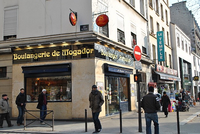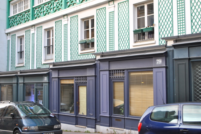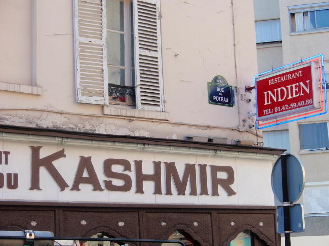 Když se o kousek dál z toulky vedlejšími uličkami vrátíme na hlavní rue de Belliard, zjistíme, že se nám směrem k další křižovatce s rue Poteau zužuje. Na jejím konci sejdeme po několika schodech na křižovatku, kde najdeme zajímavé mrňavé indicko-pakistánské obchůdky a kavárny. Koupila jsem si tam sice ovoce, ale fotit jsem si je netroufla, jen domy za rohem.
