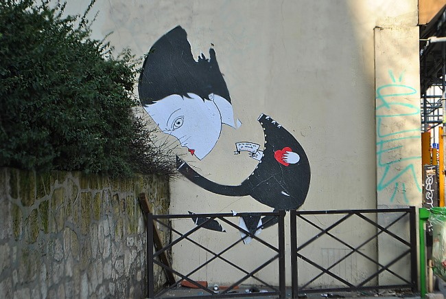 Upřímně řečeno, vydala jsem se do této části města také proto, že jsem věděla, že zde kdysi mívali ateliéry někteří dnes známí umělci, kteří se zabývají street artem. Tím nejslavnějším je zřejmě ten, která si právě podle svého bývalého bydliště v této čtvrti říká Mosko a jehož barevné obrazy zvířat na zdech jste určitě v Paříži už viděli. Naivně jsem čekala, že tady ještě něco na zdech najdu, ale nebylo tady nic ani od něj, ani od jeho ostatních kolegů. Proto si na připomenutí jeho tvorby musíme odskočit do vedlejšího 19. obvodu.