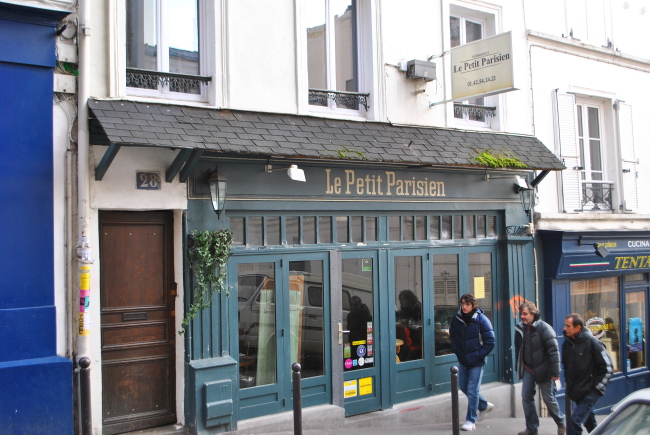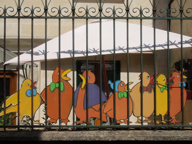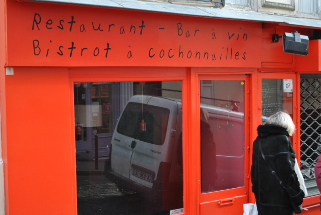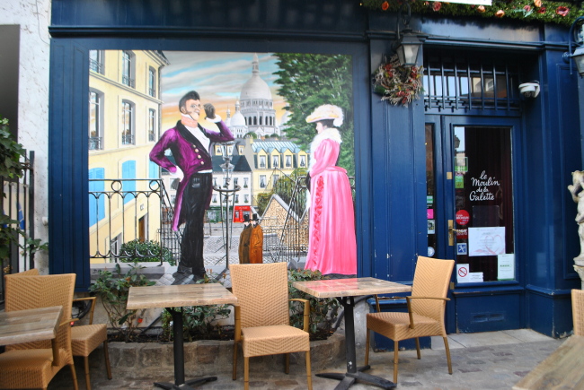 Tato zeď u vstupu do restaurace, dnes s nevkusnou rádoby stylovou malbou montmartreského motivu, bývala dřív zarostlá břečťanem – a podle mě to vypadalo mnohem líp
