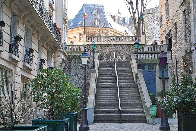 Z uličky vedle parku je hezký výhled na domy v ulici o úroveň výš. Mezi nimi se vyjímá bílo-béžový dům v rue Orchampt, v jehož posledních dvou patrech bydlela až do své smrti zpěvačka Dalida. Mimochodem, její stometrový byt byl nedávno na prodej – jedna realitní kancelář ho nabízela za „pouhých“ 2 350 000 Euro. Nekupte to za tu cenu.