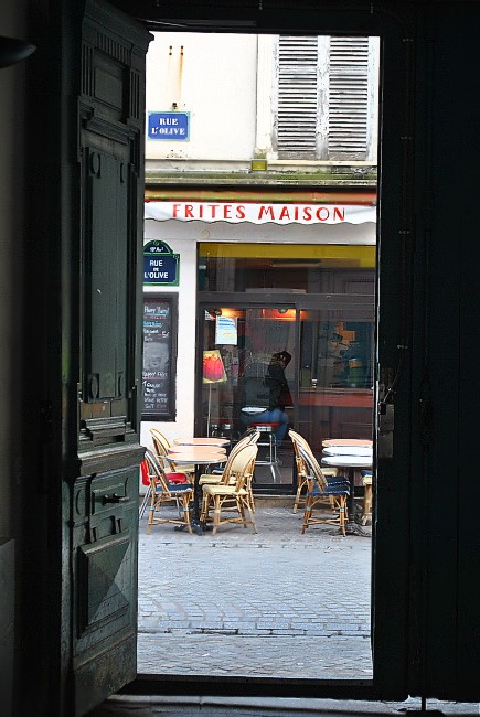 Naše dnešní procházka končí před kavárnou na rohu rue des Abbesses. Na stejné místo se ještě vrátíme příště, máme tady totiž ještě něco na práci – bližší prohlídku jedné ze zajímavostí v ulici.