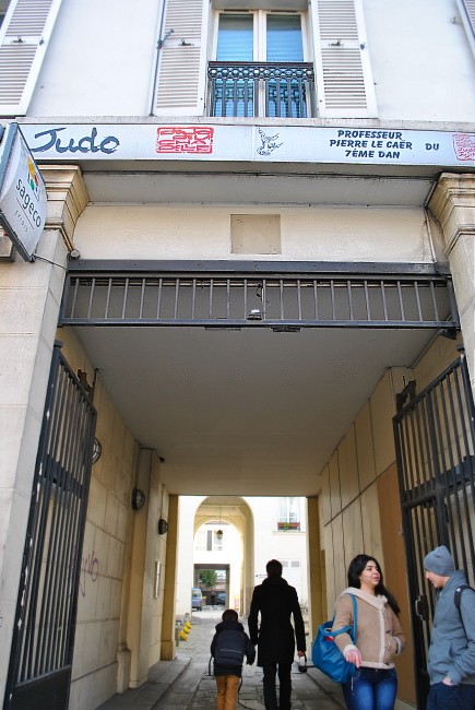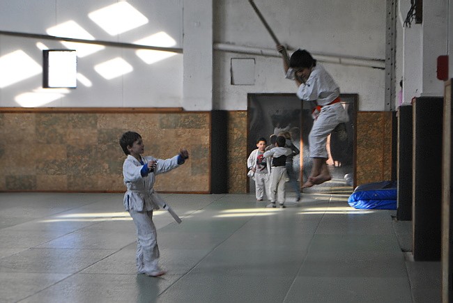 Třetí dvůr – a ateliér s charakteristickými dřevěnými vraty je zavřený. Za umělcem se sem budeme tedy muset podívat jindy. A to judo? Malé judisty jsem v tělocvičně našla.