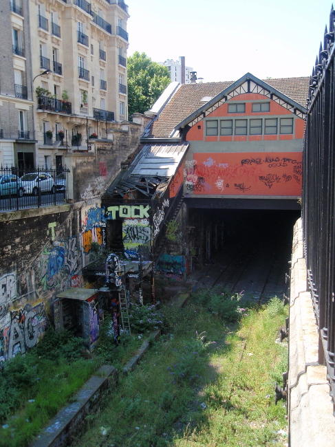 Za křižovatkou nám staré koleje opět vystupují na povrch a my jdeme kolem trati, za kterou si můžeme prohlížet zadní trakty domů, které stojí na její druhé straně.