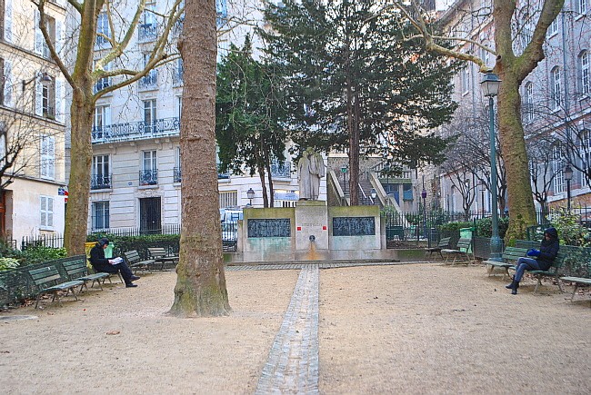 V zimě byl park úplně prázdný – a přes ještě holé větve stromů byla budova Bateau-Lavoir opravdu vidět. Samozřejmě už to nejsou ty původní ateliéry, ve kterých se na začátku minulého století psala historie moderního malířství, ale budova, postavená zcela znovu po velkém požáru v roce 1970.