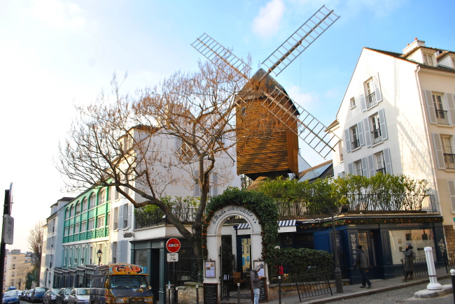 Moulin Blute-Fin můžeme obdivovat jen z dálky, vchod z ulice pod ním zůstává už mnoho let zavřený