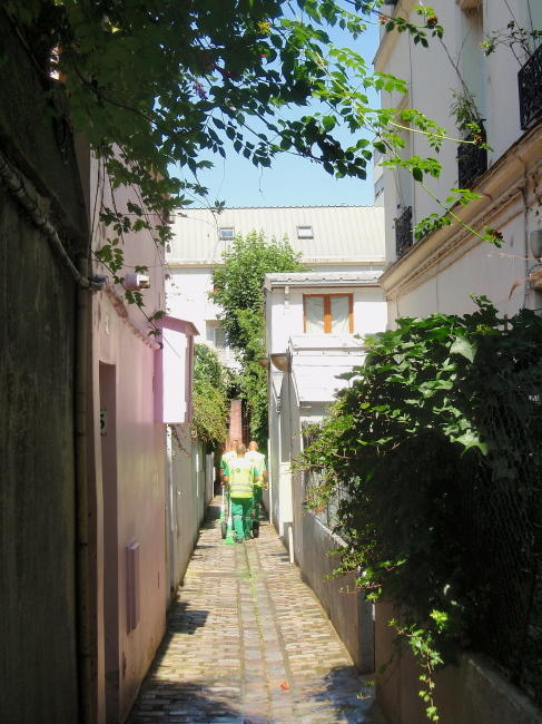 Výjimky se ale přece jen najdou, jako třeba impasse de Talus, úzká ulička, kde vládne klid a ticho (pokud ho zrovna neruší tři popeláři, kteří se na úkor mého fotografování snaží být třeskutě vtipní)