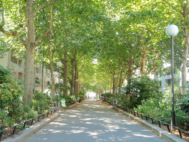 Železniční koridor se nám mezitím změnil – trať je zde jen pár desítek metrů od bývalého nádraží překrytá a vede po ní široká stinná promenáda, kde jen cihlové výdechy ventilace dosvědčují, že tady kdysi jezdíval vlak