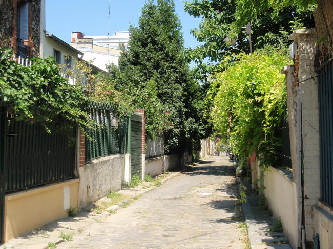 Až na samé hranici Paříže, na periferii, kde by to člověk nečekal, leží tato roztomilá ulička s nízkými domky, obklopenými malými zahrádkami. Jak se vám líbí?