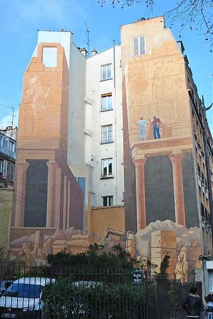 Objevila jsem tu tentokrát několik nových uliček a náměstí, vlezla jsem na dvorky několika domů, ale nic zvlášť malebného jsem nenašla, najedla jsem se v thajském bistru, koupila si ovoce v místní tržnici a objevila zajímavou malbu na slepé zdi jednoho z vysokých činžáků. A také jsem si konečně prohlédla kostel St. Denis de La Chapelle, který byl hlavním důvodem, proč jsem se sem vydala, ale o něm zas až příště.