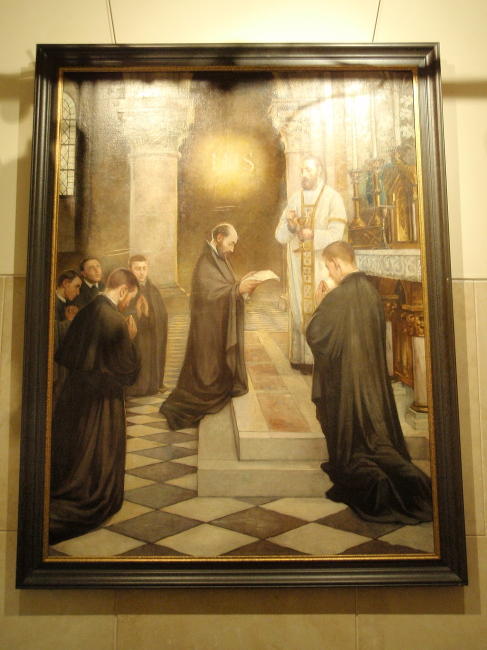 To, co bylo řečeno výše, není ovšem celý důvod toho, proč je krypta dnes připomínána. V době, kdy byla kaple v dolním opatství cílem mnoha poutníků, se udála další významná událost. Pozdě večer 15. srpna 1534 zabušilo na bránu horního opatství sedm černovlasých mužů, vedených španělsky hovořícím mladíkem s pronikavým pohledem. Matku představenou, která polekaně přiběhla otevřít, požádali o půjčení klíče od krypty sv. Denise. V ní pobyli celou noc a když druhý den ráno vraceli klíč, sdělili důvod návštěvy i svoje jména. Ten zarostlý mladík, který skupinku vedl, se jmenoval Ignác z Loyoly a společně s Františkem Xaverským a dalšími čtyřmi druhy v kryptě složil do rukou Petra Fabera, jediného z nich, který byl knězem, řeholní slib cudnosti a chudoby a předsevzetí pouti do Jeruzaléma. Té noci bylo takto v kryptě založeno Tovaryšstvo Ježíšovo, o šest let později uznané i oficiálně. Celou událost nám připomíná rozměrné plátno, které je v kryptě vystaveno.