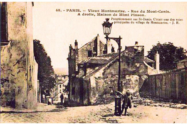 Kdo byla Mimi Pinson? Vytvořil ji v roce 1845 jako literární postavu spisovatel Alfred de Musset ve své povídce Ďábel v Paříži a je předobrazem mladých dívek, kterým se říkalo grisettky, chudých, ale veselých švadlenek, kterých byly tehdy plné pařížské ulice. Mussetova postava Mimi ožila později v písních a verších a stala se tak slavnou, že jí byla na konci 19. století lidovými pověstmi přisouzena malá mansarda v domku v rue du Mont Cenis, ve kterém údajně žila. Domku její jméno už zůstalo, i když v něm žili zcela jiní lidé – například i holandský malíř Kees Van Dongen.