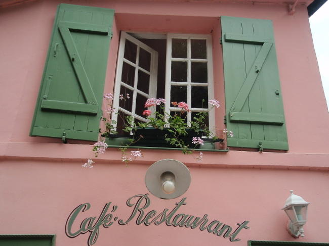Zhruba stejný pohled jako nahoře na fotce, dům Mimi Pinson je první vpravo