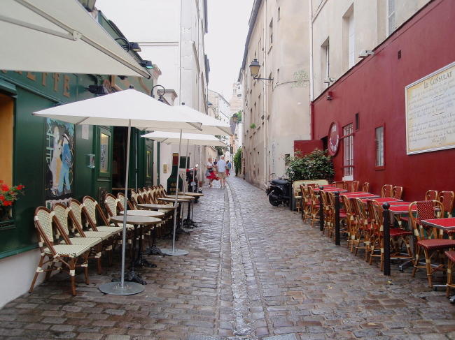 Úzká venkovská ulička na vrcholku Montmartru leží sice v těsné blízkosti všech turistických tras na kopci, ale většinou je příjemně prázdná. Turisté do ní moc nezacházejí, pravděpodobně proto, že na rozdíl od okolních ulic tady nenajdou žádné obchody s turistickými cetkami – a pouhé venkovské kouzlo starého Montmartru je netáhne. Tím líp pro nás, kteří si dokážeme vychutnat půvab starých dlažebních kostek, ošuntělých zdí, oprýskaných dveří a slepých oken, vedoucích kdovíkam.