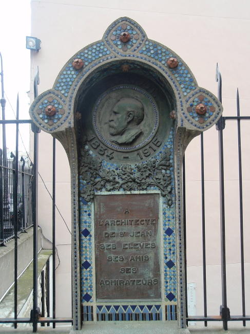 Od odmítání až k pomníku přímo před kostelem – toho všeho se dočkal architekt Anatole de Baudot. Pomník je zdobený stejně jako fasáda a části interiéru barevnými keramickými kolečky.