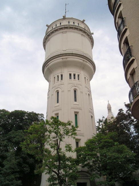 Mimochodem, na Montmartru najdeme kromě vodárenské věže i celou vodárenskou nádrž, tak umně maskovanou, že o ní hordy turistů, procházejících kolem, vůbec netuší. Leží hned vedle Sacré Coeur a kostela Saint-Pierre, byla dokončená v roce 1889, má kapacitu 11 000 m3 a je maskovaná starou zdí, tvořící celou jednu stranu rue Azais.