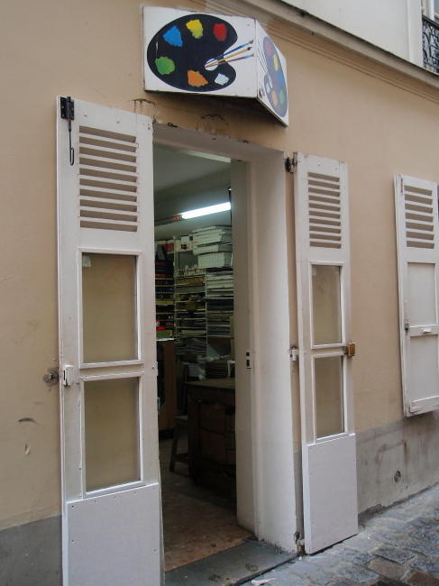 Obchod s potřebami pro výtvarníky pořád ještě připomíná slavnou uměleckou tradici Montmartru z dob před tím, než se z něj stal Disneyland