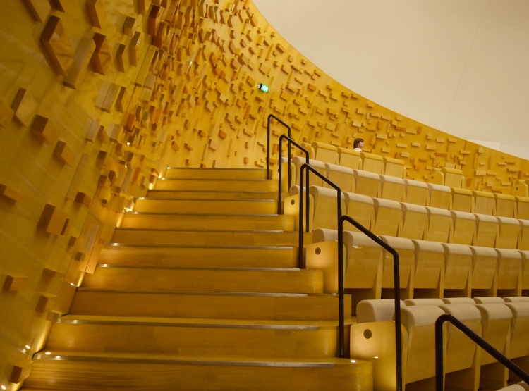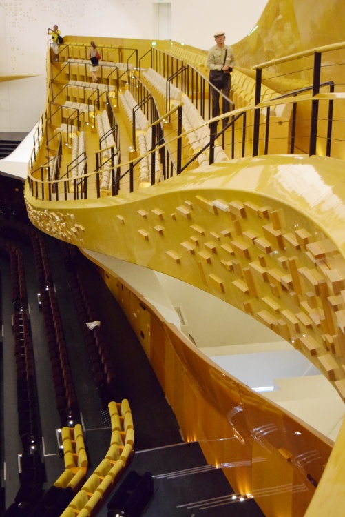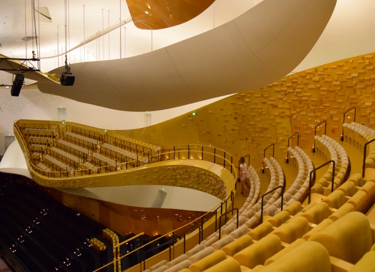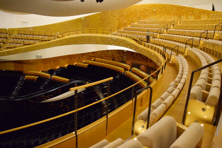 Na vytvoření co nejlepší akustiky spolupracovaly ty nejlepší světové firmy z oboru. Akustika je tak zarucena nejen tvary sálu, galeri9 a jejich zakřivení, ale také „špalíčky“ na zdech a dalších plochách, jejichž umístění bylo přesně vypočítáno, a také tím, čemu tady říkají „oblaka“ – zvlněnými pláty, které visí nad hlavami diváků od stropu.