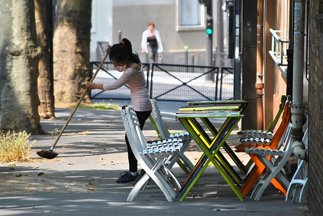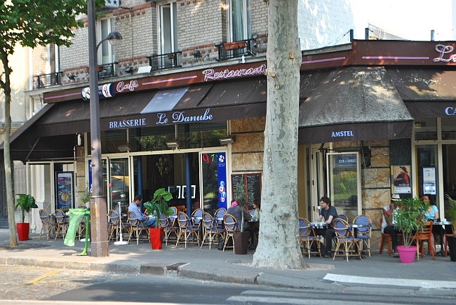 Přirozeným centrem této malé kolonie rodinných domků, obklíčené moderními paneláky, je place Rhin et Danube, klidné náměstíčko s bílou sochou dívky se snopem obilí pod paží uprostřed středového záhonu. Na náměstí najdeme dvě kavárny, Café parisien a Le Danube. Do obou chodím ráda. Café parisien je maličká, má malou terasu ve stínu a po chodníku rozhozené stolky, na které v létě svítí slunce. Naproti tomu má Café Le Danube terasu širokou a místo se tam najde vždycky. Pokud vám vzor, který má kavárna na průčelí, připomíná bruselský styl 60.let, není to náhoda, ještě výraznější je to uvnitř. Tam najdeme typické lustry i snížené podhledy, jaké se v těch letech pod stropy dělaly. Jen jsem nepřišla na to, jestli je kavárna schválně tak retro, nebo jestli to tady prostě tak z 60. let zůstalo.