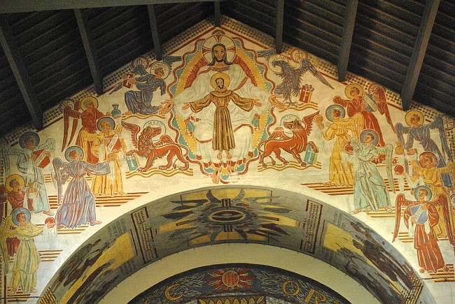 V oblouku nad kněžištem jsou vymalovány scény z života sv. Františka, v horní části vidíme fresku Ježíše se sv. Františkem, ke kterému se obracejí andělé a apoštolové, představující jeho ctnosti. Autorem fresek je Charles Bouleau.