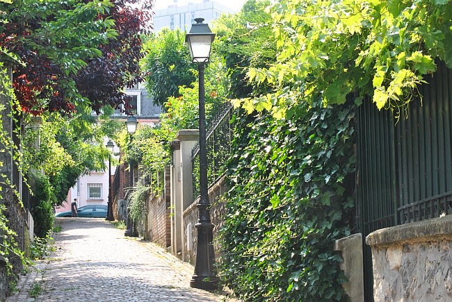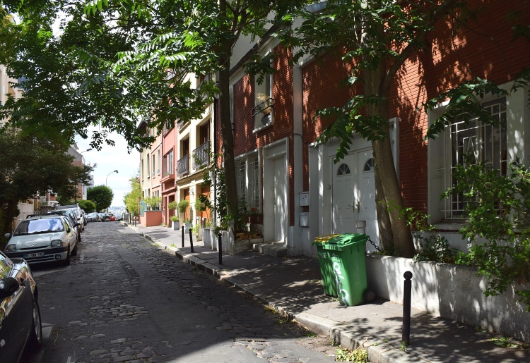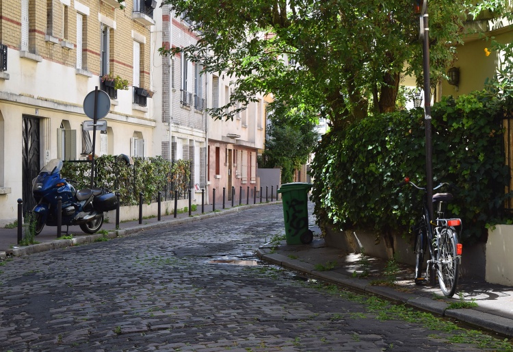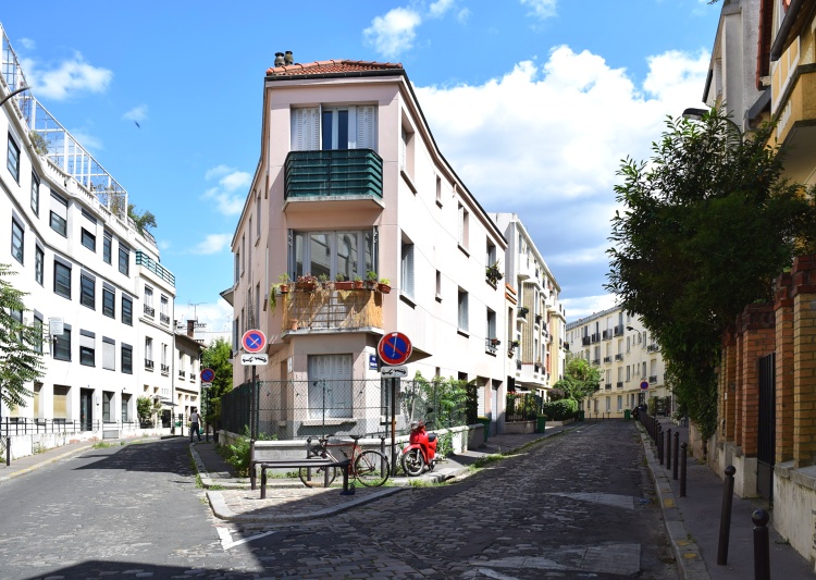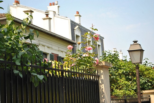 Typická ulička čtvrti, které jsou tady označovány jako „villa“. Jsou většinou pojmenovány po francouzských prezidentech nebo po básnících, spisovatelích a malířích (najdeme tu například Monetovu, Verlainovu nebo Rimbaudovu ulici). Uličky mají přesně to, co máme na Paříži tak rádi – malebné branky, porostlé pnoucími růžemi, které vedou do předzahrádky jako dlaň, zídky z vyskládaných kamenů nebo starých omšelých cihel, na kterých se vyhřívají tlusté kočky, tepané mříže, hrozny květů vistárie, oprýskané dřevěné okenice, vysoké staré lampy a neprostupné zelené keře, za kterými občas jen tušíme domečky jako pro panenku, s barevnou fasádou, kamennými schůdky, vyřezávanými vstupními dveřmi a okny plnými květináčů. Zkrátka ráj na zemi.