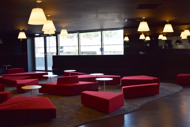 Kavárna pro účinkující s evidentně docela nepohodlnými sedáky. Asi aby se tady muzikanti nezakecali, nebo co.