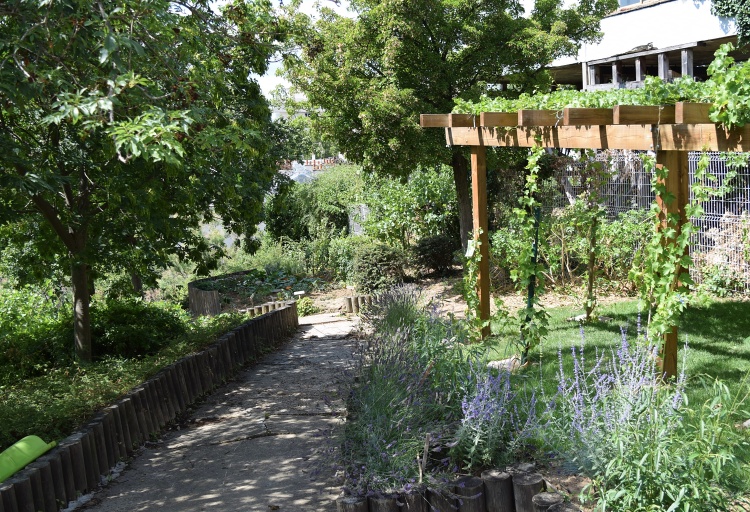 Uličky, které vedou západním směrem, se stýkají u vyhlídky, pod kterou leží ve svahu jedna z pařížských sdílených zahrad. Za mřížovým plotem vyhlídky se před námi otevře pohled na Montmartre. Už jen kvůli němu stojí za to sem vyšplhat.