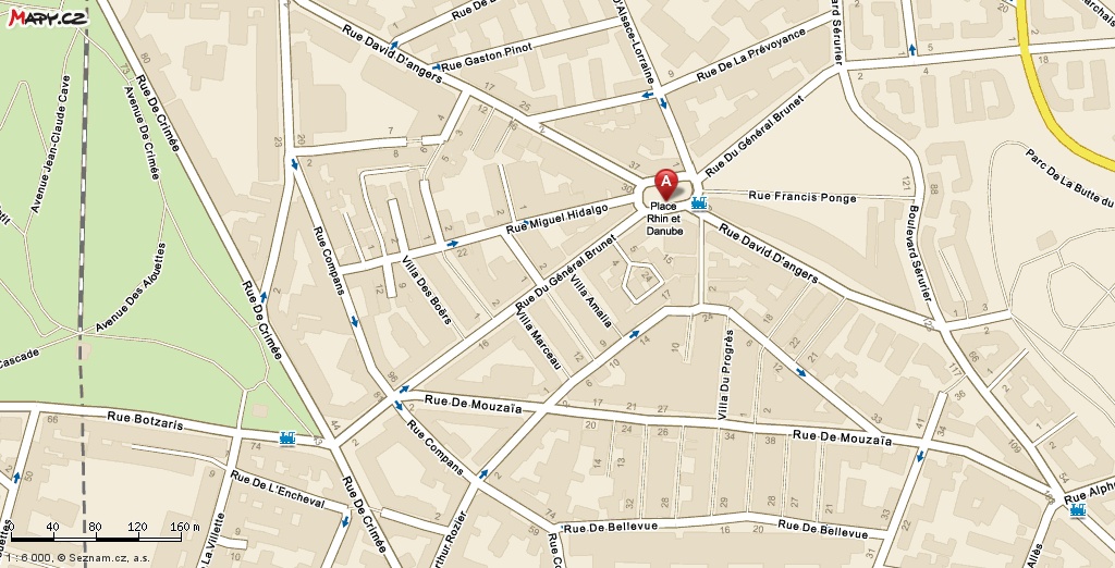 Jak se tam dostat: metro Botzaris nebo Danube (linka 7bis)