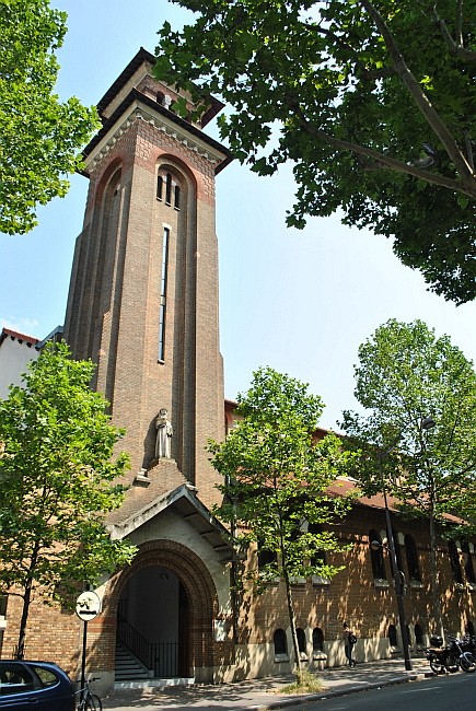 V dolní části rue de Mouzaïa se nad nízkými domky tyčí hranatá cihlová věž místního kostela sv. Františka z Assisi a přesně v něm se zastavíme příště.