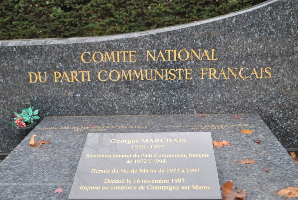 V blízkosti zdi jsou pohřbeni i někteří představitelé francouzské levice. Jeden z hrobů mě docela pobavil. Nese jméno Georges Marchais, na které si pamětníci z 80. let určitě vzpomenou, byl generálním tajemníkem francouzské KS a spolu se svým italským kolegou Enricem Berlinguerem sloužil často pro naše soudruhy jako ideologická zástěrka. Honosná žulová deska hrobu nám nakonec prozradí, že ač hrob má v Paříži, „odpočívá na hřbitově v Champigny sur Marne“.