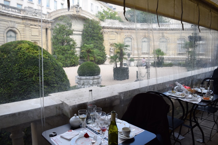 Uměleckoprůmyslové muzeum sídlí v jednom z křídel Louvru a restaurace má svoje místo v přízemí s výhledem do Tuilerijské zahrady. Do loňského roku byla trochu zanedbaná, letos ji převzal nový provozovatel a udělal z ní poměrně luxusní místo. Na skleničku s výhledem na budovu Louvru je jako dělaná.