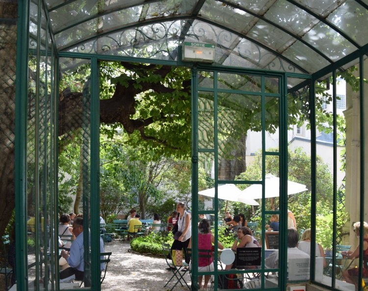 Muzeum romantického života má snad tu nejromantičtější kavárnu v Paříži. Secesní skleník uvnitř skrývá bar a ve skrytém koutu jsou kolem záhonů rozestavěny stolky. Nikdy, když jsem někde poblíž, si tohle místo nenechám ujít.