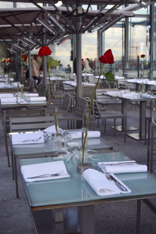 Kdo nemá čas na posezení, může si ten samý výhled užít z vrcholku pojízdného schodiště, které ústí jen pár metrů od vstupu do restaurace. Na obě místa se dostanete až po zaplacení vstupného do muzejních sbírek (14 eur), nebo poplatku za vstup na vyhlídku (3 eur).