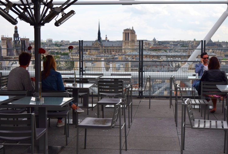Kromě obyčejné kavárny ve zvýšeném přízemí vestibulu, kam se dostanete bez placení vstupného, má Centre Pompidou v pátém patře restauraci Georges. Poznávacím znamením je terasa, vklíněná mezi konstrukci budovy, se stolečky, na kterých nechybí čerstvé rudé růže, a především – a to je ten hlavní důvod, proč stojí za návštěvu – dechberoucí výhled na celou Paříž.