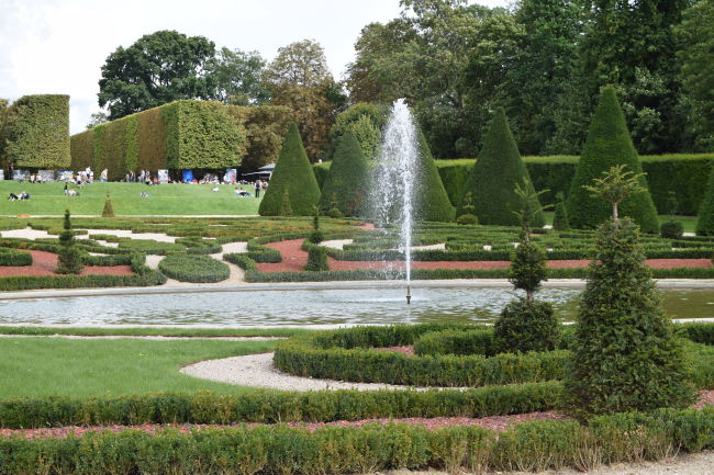 Za zámkem najdeme rozlehlý anglický park, který od něj neodděluje, jak bychom čekali, udržovaná francouzská zahrada, ale stejně jako dříve velká rozkvetlá louka. Louka se seká jen dvakrát ročně, stejně jako za císařovny, kdy sloužila jako pastvina pro zvířata.