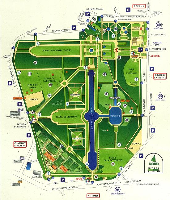 Doporučuji prohlédnout si cestu od RER nejdříve na mapě, není to úplně blízko a od různých stanic se dá dostat do různých částí parku. Nejblíž je to od stanice Parc de Sceaux. Částečně jsou stanice vidět i na horní mapce.