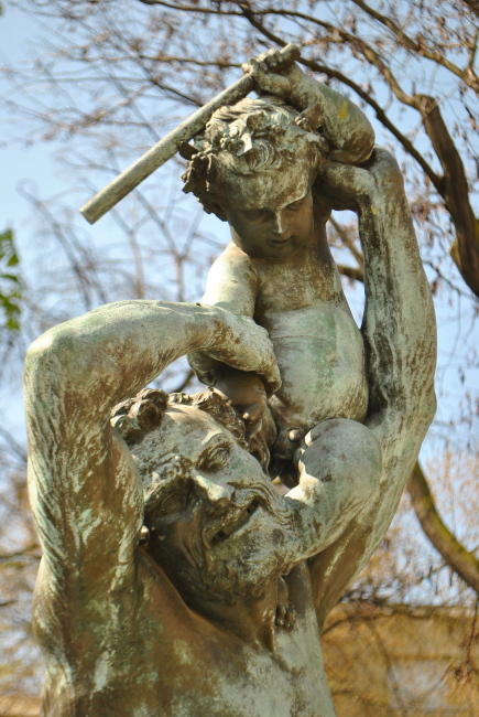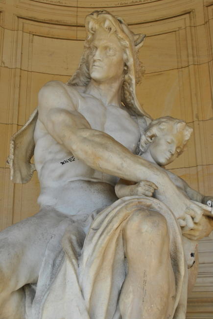 Detail sochy Bacchovo dětství od Jeana-Josepha Pérrauda