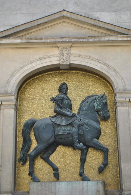 Nádvoří dominuje bronzový jezdecký reliéf krále Jindřicha IV. od sochaře Lemaitra z roku 1838, orámovaný obloukem se zlatou mozaikou. Původně zdobil fasádu pařížské radnice, ale po požáru, založeném komunardy v květnu 1871, skončil tady v muzeu.
