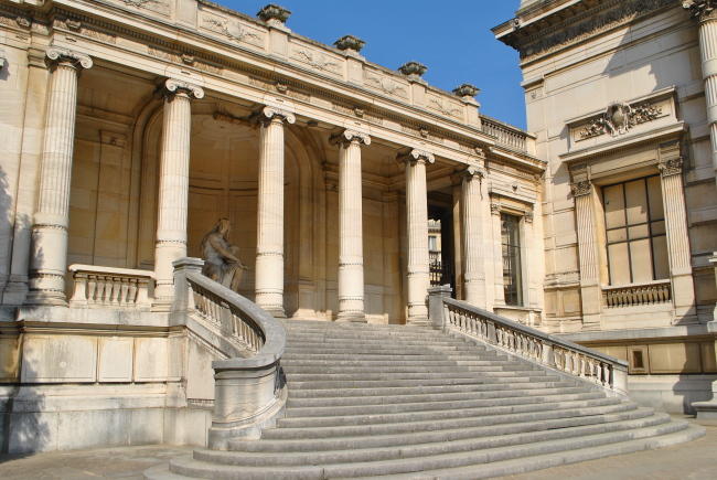 Průchod nad monumentální schodištěm vede k hlavnímu vstupu z avenue Pierre 1er de Serbie