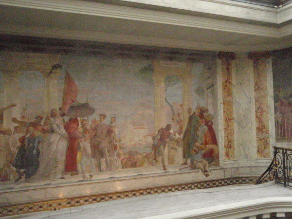Prostoru nad schodištěm, vedoucím z přízemí do prvního patra, dominuje tato nádherná Tiepolova freska