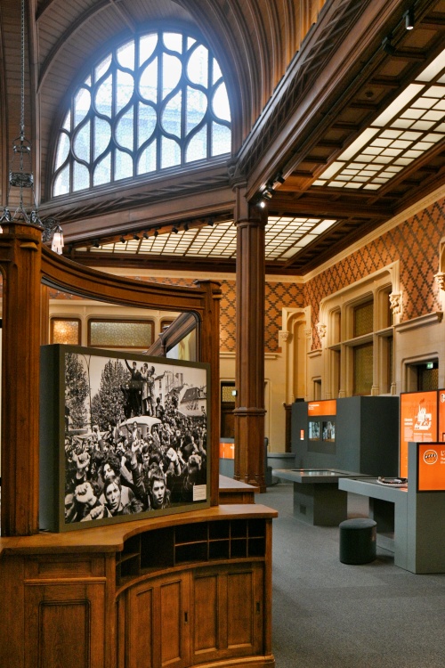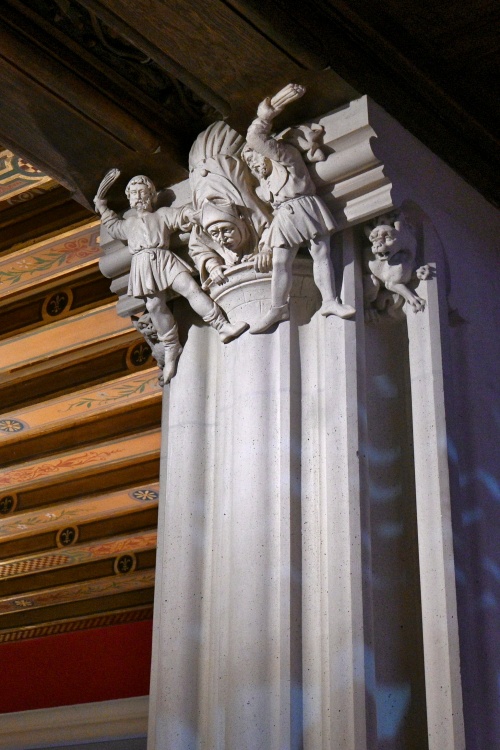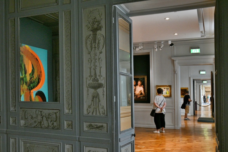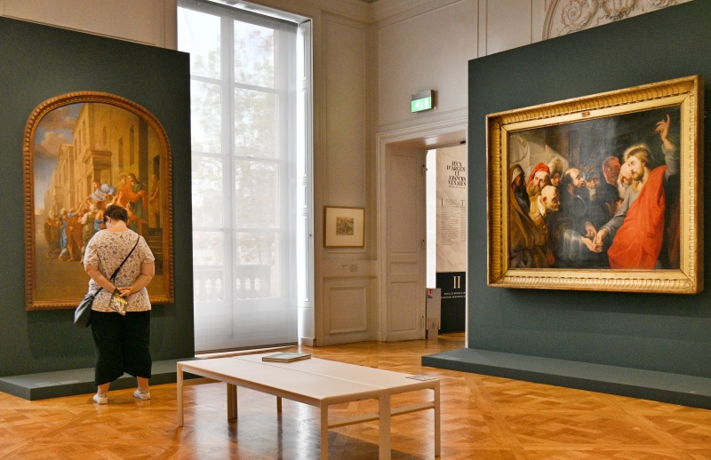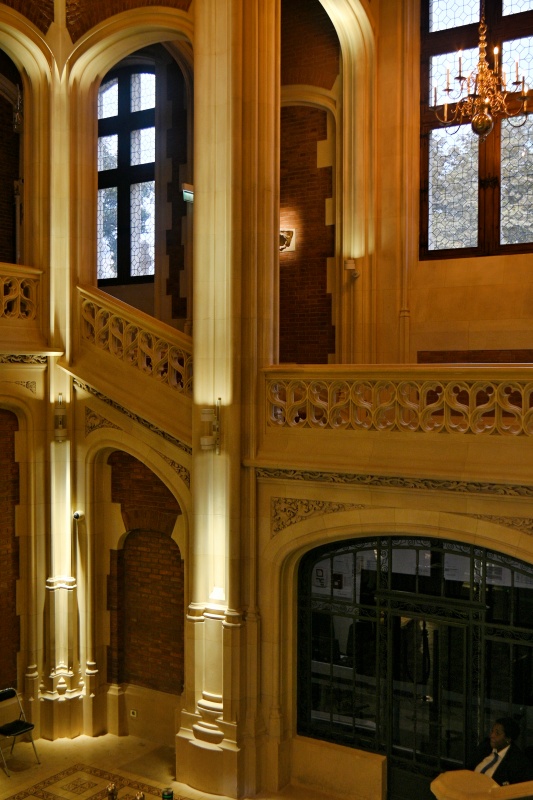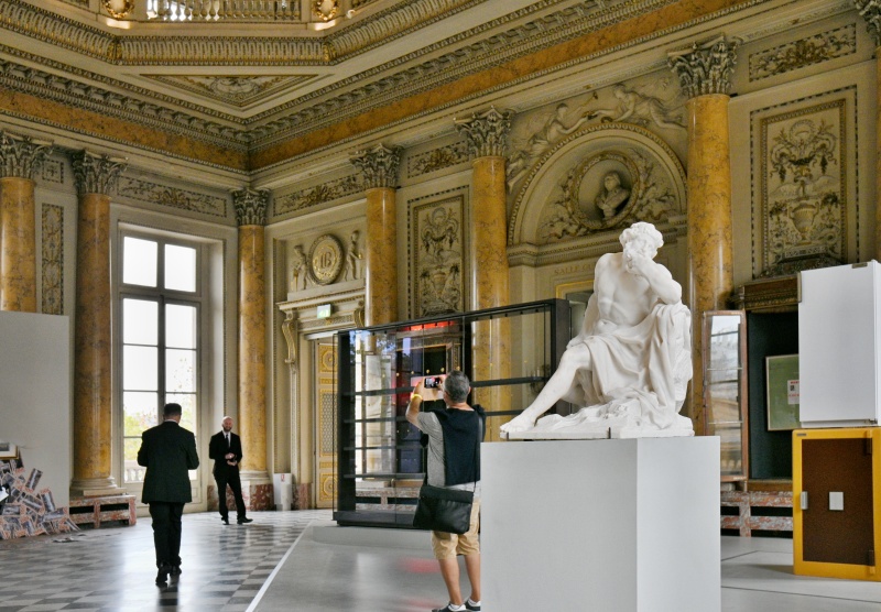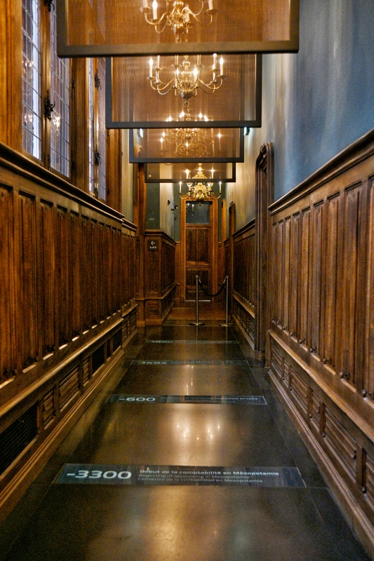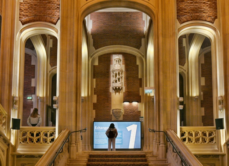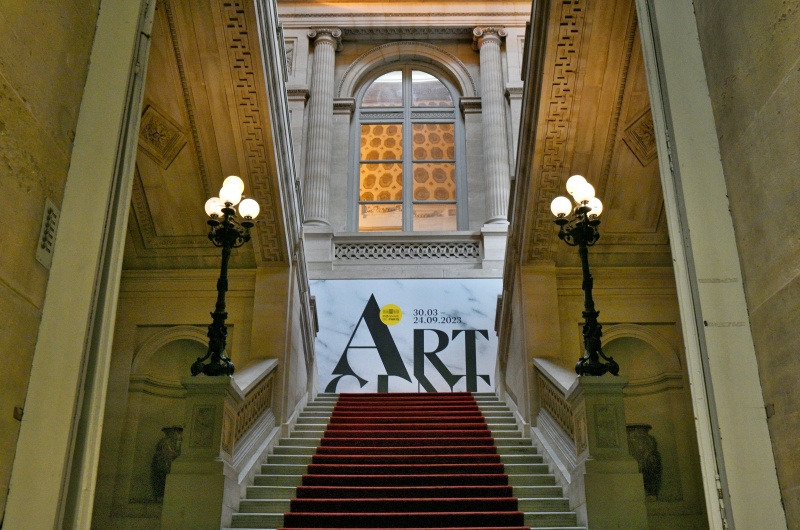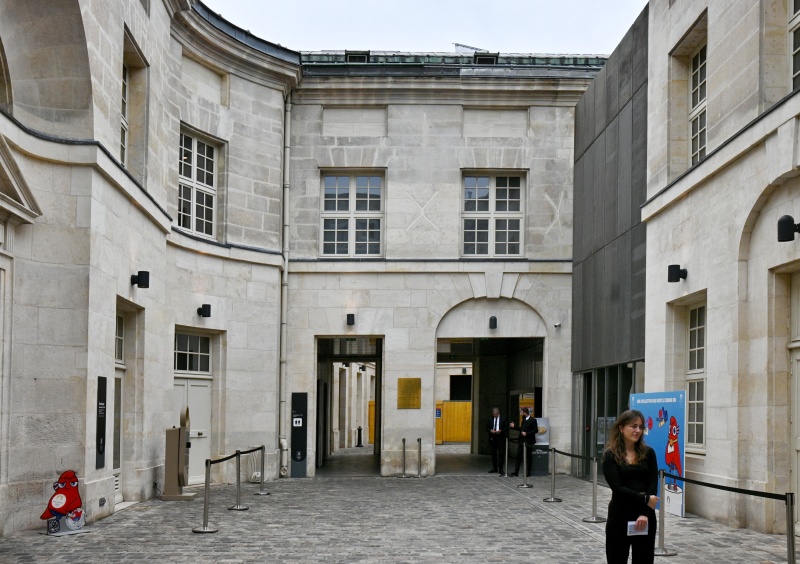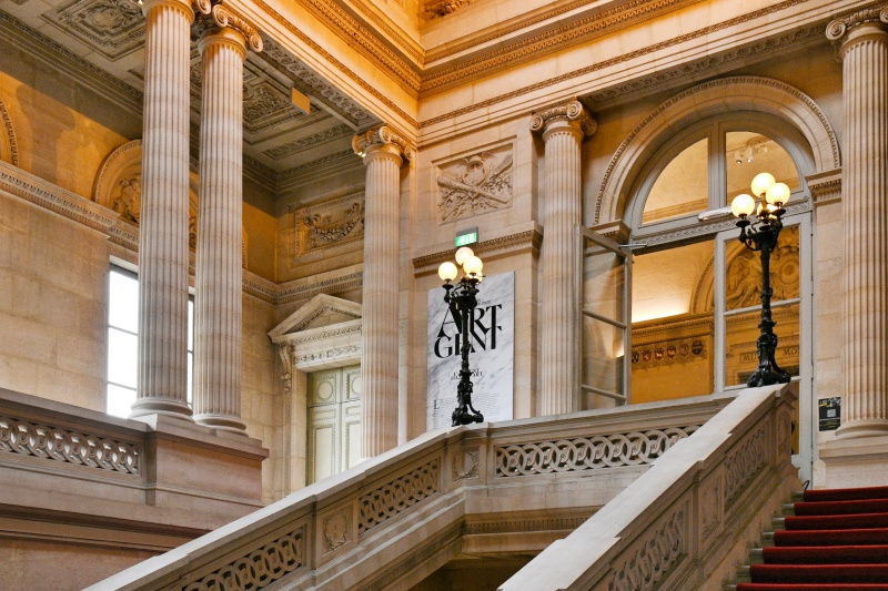 Z průjezdu mezi hlavním vchodem z nábřeží quai Conti a hlavním nádvořím se vstupuje do reprezentační budovy Mincovny. Po čestném schodišti, nad kterým se klene vysoká kopule, se dostanete do prvního patra s velkým vstupním salonem, bohatě zdobeným štuky, mramorem a řezbami, na který navazuje celá řada dalších menších salonů. V nich se konají výstavy, které mají sice nejrůznější zaměření, ale vždy stejné hlavní téma – peníze, měna nebo mince. Výstava, kterou jsem tady viděla na podzim a která prezentovala zobrazení peněz v umění (od Jidášových třiceti stříbrných, přes zlaté tele až po realistická moderní díla vycpaná falešnými bankovkami), sice už skončila, ale ta příští začíná 1. března a bude zaměřena na hrací automaty, juke-boxy a všechny další elektrické a mechanické hry a nástroje, fungující po vhození mince, které byly typické pro pařížské kavárny a všeobecně západoevropské podniky 60. až 90. let minulého století.
