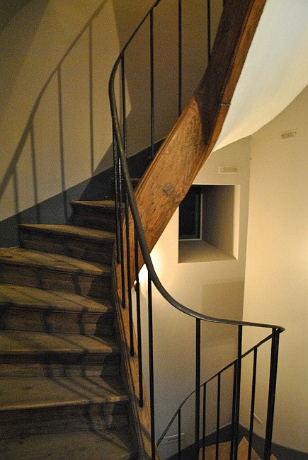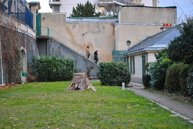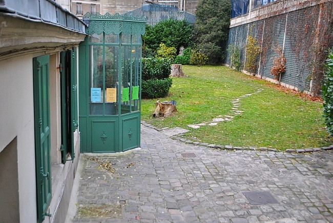 Domem vede přes dvě patra příkré dřevěné schodiště až na malý dvorek s vraty do rue Berton. Člověk si lehce představí, jak tudy otylý spisovatel zadýchaně klopýtá dolů, zatímco jeho služebná nahoře nečekanému věřiteli vysvětluje, že tady žádný pan Balzac nebydlí.