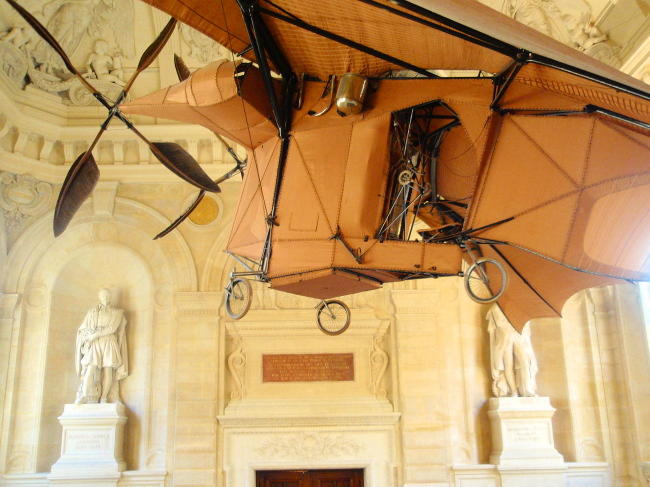 Kostel není ovšem jediným prostorem muzea, kde najdeme takové nadměrné exponáty. I nad čestným schodištěm na nás čeká první model vrtulníku z roku 1841