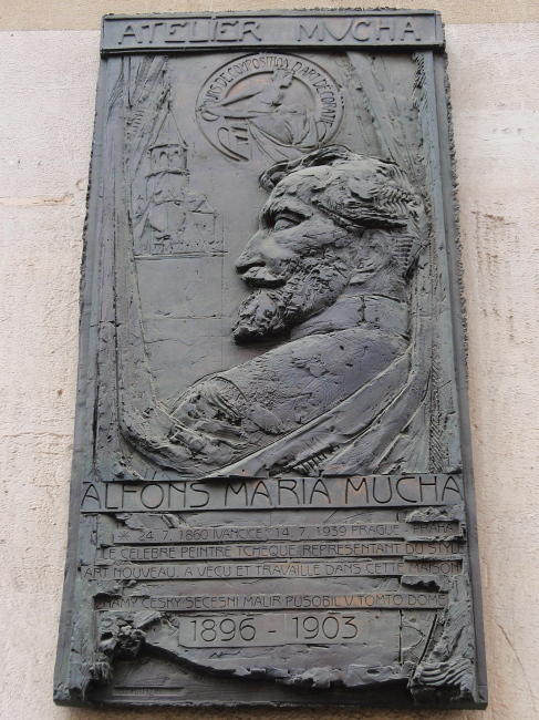 V ateliéru na dvoře tohoto domu bydlel a pracoval během svého pařížského pobytu Alfons Mucha