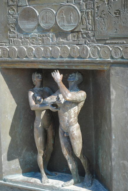 Kovové plastiky na středních pilířích jsou dílem sochaře Gustava Michela. První z nich představuje kováře, druhá lodníky, kteří připevňují lany znak Paříže.